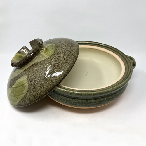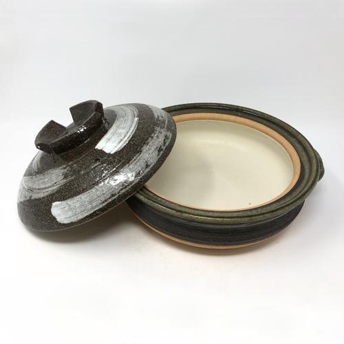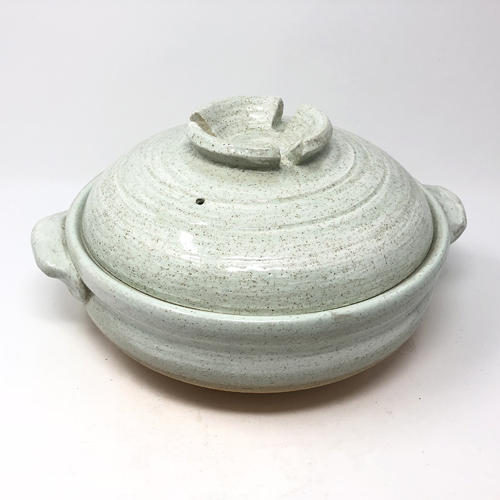 幸村鍋はご飯専門用釜。縦長のその形と縁の具合で吹きこぼれにくく、おいしく早く炊けるのが特徴。耐火度の高い土を使っているので、何度も直火にかけても割れにくく、丈夫で長持ち。料理長のレシピ付き。