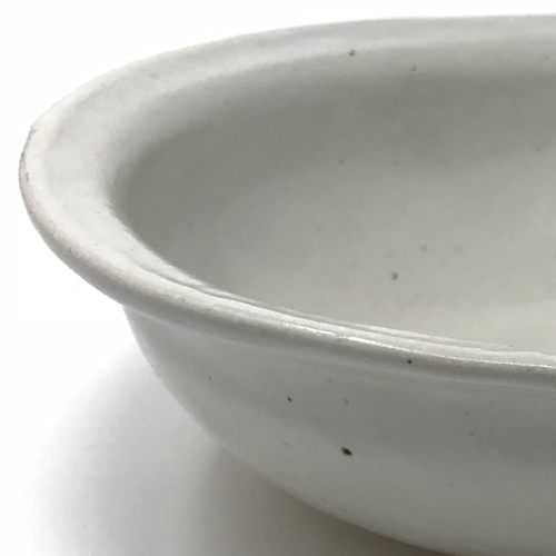 帽子のようなつばのある鉢。光沢のある白がすっきりした印象。 サイズ:幅21×奥行16.5×高さ5.5cm
