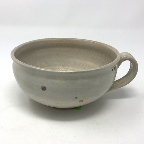 愛らしいドット柄のスープカップ。 サイズ:幅12.5(取っ手含む15)×高さ6.5cm