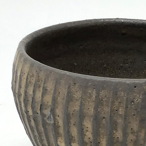 横彫の線がざらざらとした感触。 サイズ:口径8×高さ7.5cm